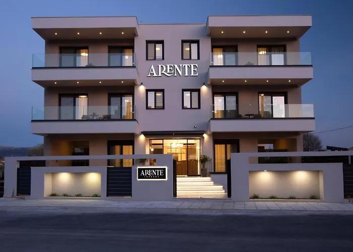 Az Arente Apartments apartman továbbá tartalmaz egy teraszt úszómedencével, mely hegyre néző kilátást kínál. Az apartman egy 10 perces sétára van Lefkáda városközpontjától, és 10 perc autóútra fekszik az Ájosz Joánisz-part területétől.